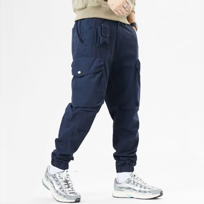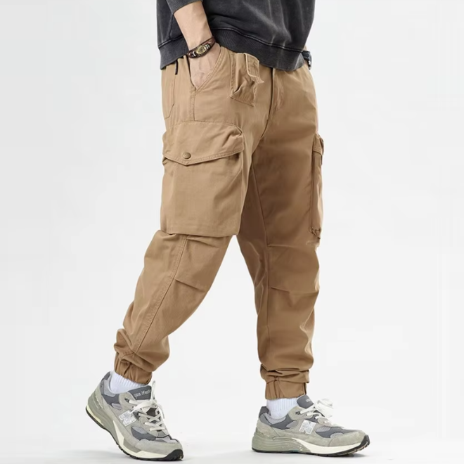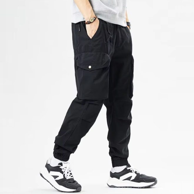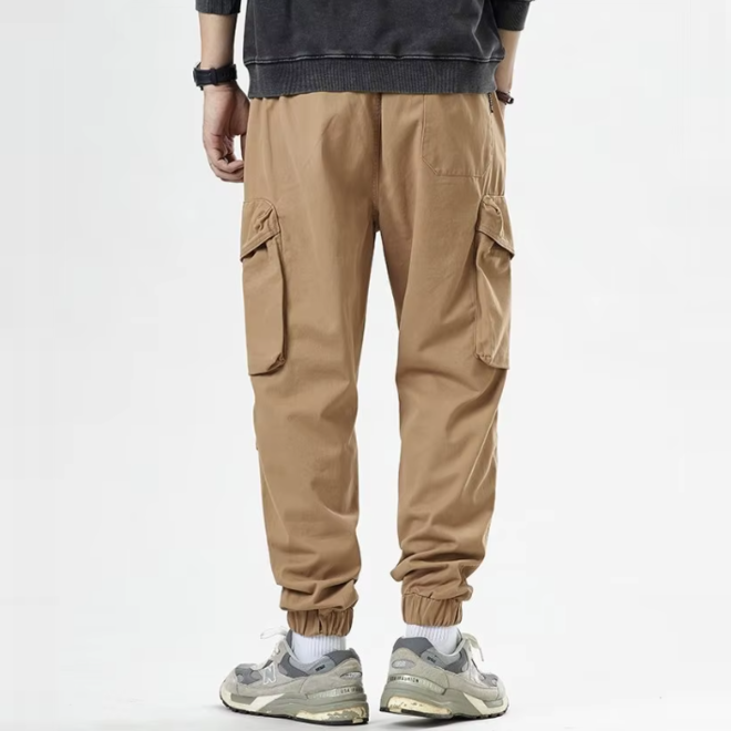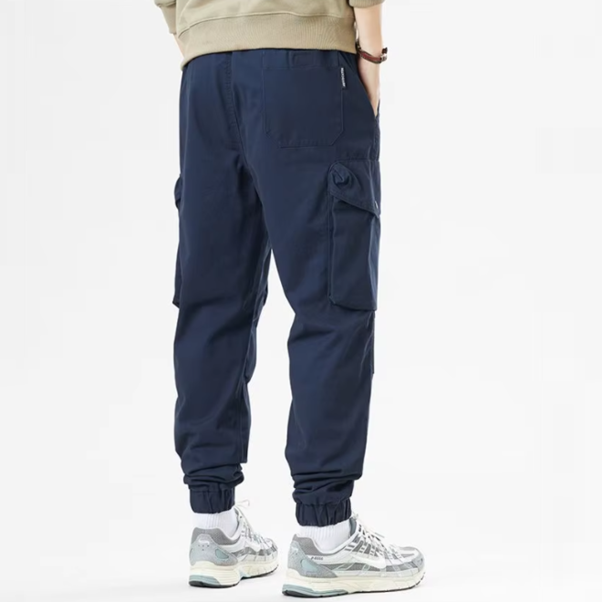 Features: Half elastic waistband at the back, Multiple pockets for easy storage of personal items,