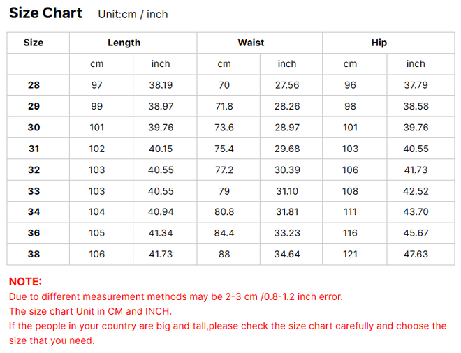 Size: 28, 29, 30, 31, 32, 33-38 (available)