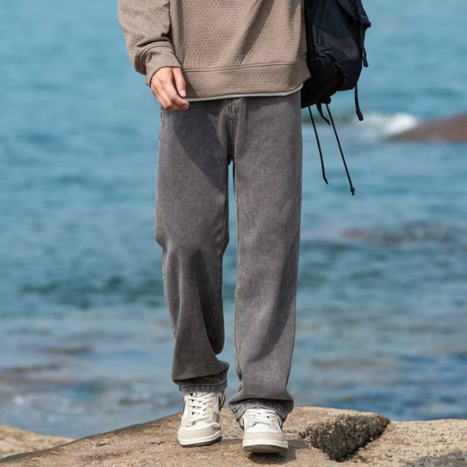 Basic Simple Washed Straight Loose Casual Mens Jeans